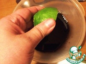 Смешать терияки и соевый соус. Добавит сок лайма.
