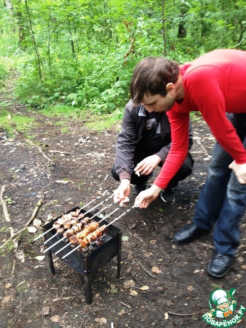 Традиционно в приготовлении шашлыка участвуют все. Моё дело замариновать мясо, испечь хлебные лепёшки или хлеб. К мангалу мужчины меня подпускают только фотографировать.