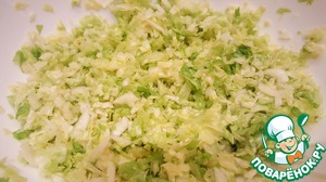 Нашинковать молодую капусту. Немного помять руками до выделения сока.