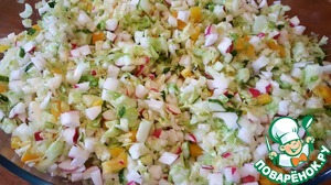 За что Вы любите весну?! За солнце, капель, пение птиц!!! А ещё за раннюю капусту!!! Так приятно купить ярко-зелёный кочанчик весеннего чуда и приготовить, например, салат!!! Угощайтесь!!! P.S. За совет с заправкой огромное кулинарное и человеческое спасибо Наташеньке (natapit)!!!