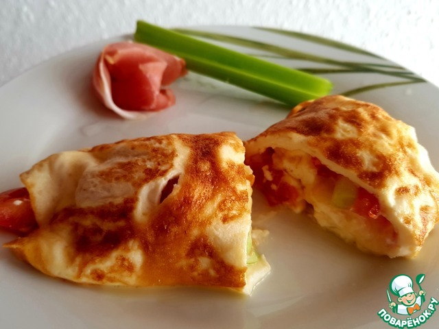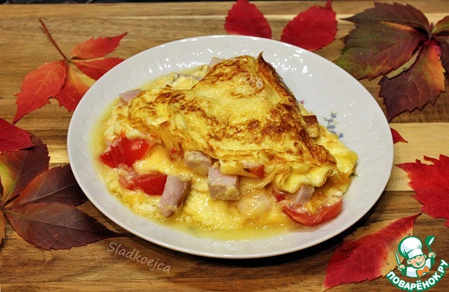Накрываем второй частью фольги, выпекаем в духовке минут 10 - сыр расплавится и "склеит" половинки омлетика. Забавно получилось.