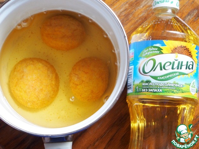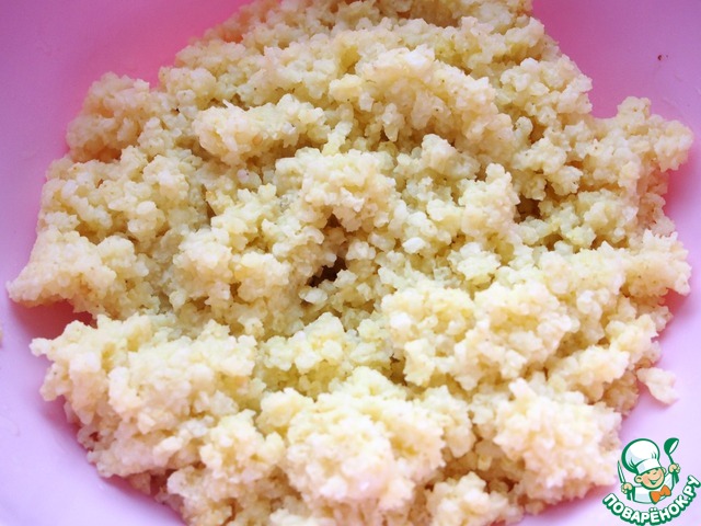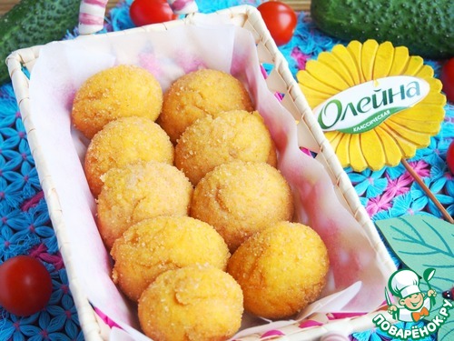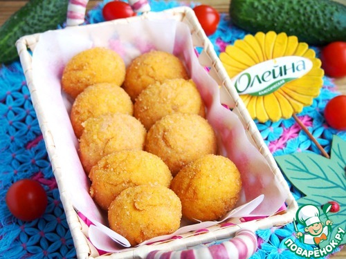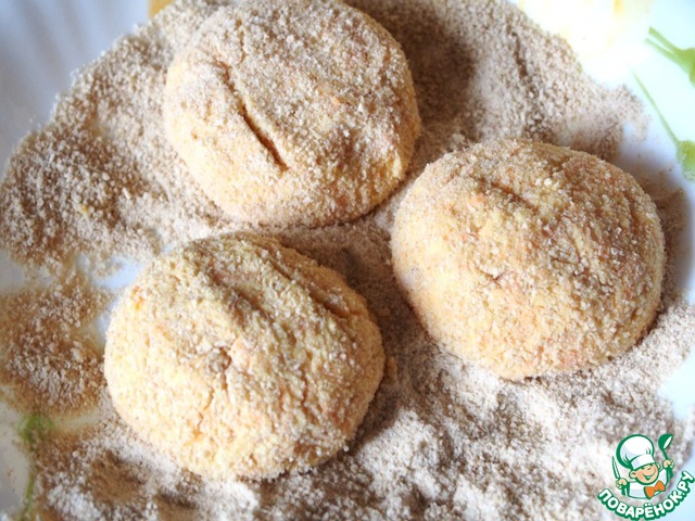 Их пшенной массы сформировать небольшие шарики, величиной, примерно, с грецкий орех и обвалять в панировочных сухарях.