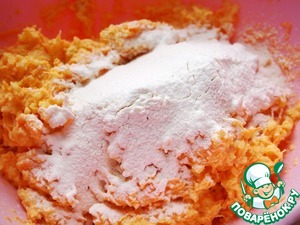 К пшену добавить морковь и сыр тофу. Хорошо перемешать.