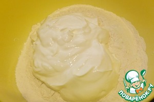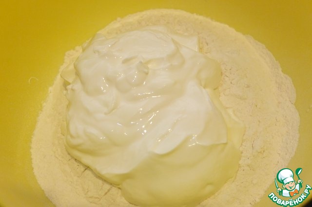 Замешиваем крутое тесто. Тесто получается не слишком однородное, это не страшно.