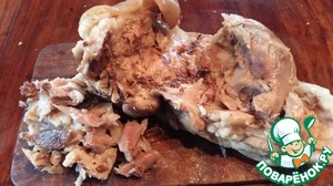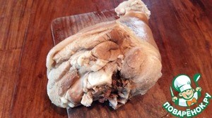 Через 2 часа проверяем рульку и, если она уже достигла желаемой степени мягкости, то достаем. Моей рульке этого времени оказалось достаточно. Рульку мы замаринуем и запечем в духовке.