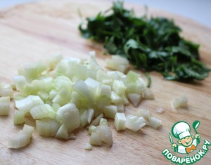 Сельдерей нарезать небольшими кусочками, петрушку мелко измельчить.