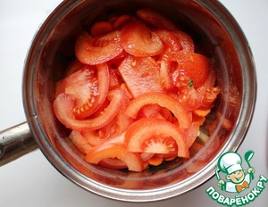 Морковь почистить и нарезать тонкими кружочками. Помидоры, если маленькие, нарезать кружочками, если большие - полукружочками.