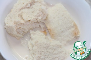 Куриное филе и размоченный хлеб пропустить через мясорубку или пробить в блендере
