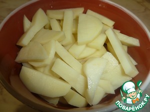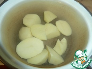 Сразу ставим варить з (половину от всего картофеля)очищенные картофелины.