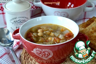 Когда картофель сварился, надо его растолочь. Затем в толчёнку добавляем немного воды, в которой она варилась. Выкладываем толчёнку и порезанный картофель в овощной бульон и ставим варится.