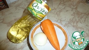 Лук режем кубиками, морковь-полосками. Из лука и моркови готовим зажарку на масле "Олейна".