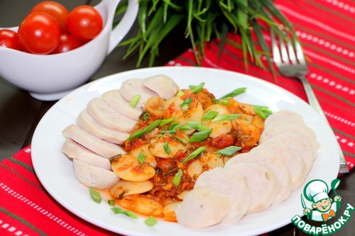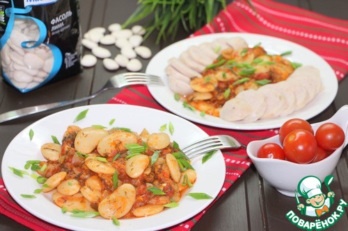 Рецепт «Гигантес яхни с куриными колбасками»: