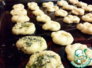 Разделить на кусочки, раскатать в "веревочку" и сформировать узелки.