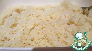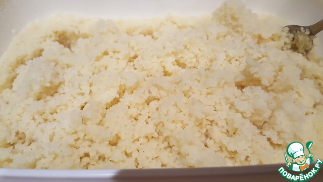 • Кус-кус залить кипятком из расчёта 1 к 2, прикрыть крышкой и оставить набухать минут на 5-7. Когда кус-кус впитает всю воду, открыть крышку и взрыхлить кус-кус вилкой. При желании можно добавить масло, соевый соус или соль. Я ничего не добавляла.