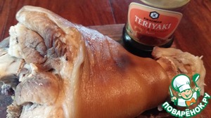 Обмазать рульку со всех сторон соусом-маринадом "Терияки" от ТМ "Киккоман"и оставить промариноваться. У меня это заняло 3 часа.