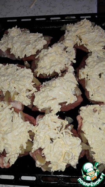 Добавляем туда сметану, майонез, специи (для свинины), перемешиваем!