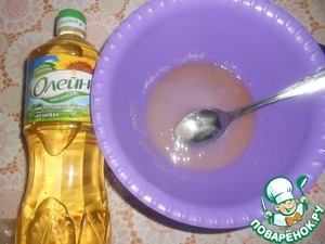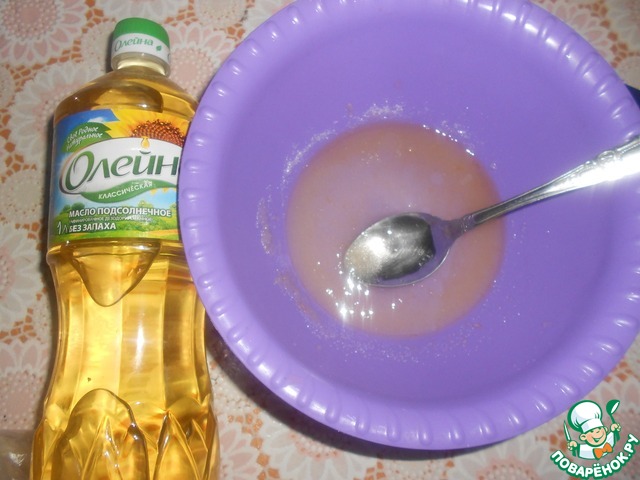 В миску выложить 2 ст. л. апельсинового сока, половину сахара. Перемешать.