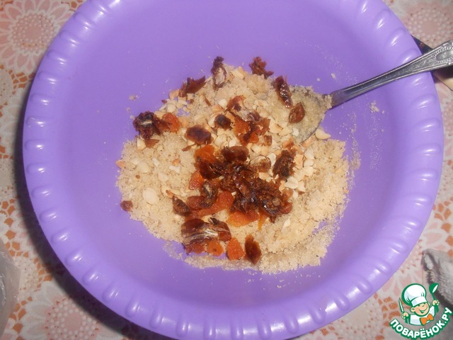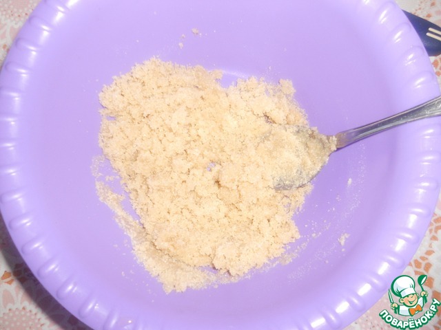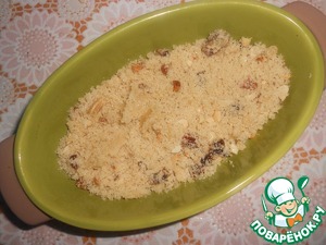 Сверху выложить оставшуюся крошку. Выпекать в разогретой до 200 градусов в духовке в течении 25 -30 минут.