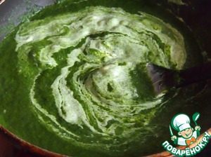 Я использую замороженный измельченный шпинат. Если будете использовать листовой шпинат, то потом соус нужно будет пробить в блендере до однородной массы. -