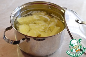 Картофель почистить, порезать, залить холодной водой, посолить и отварить до полной готовности.