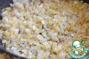 Репчатый лук почистить, порезать кубиками и обжарить на растительном масле до золотистого цвета, порепчить.