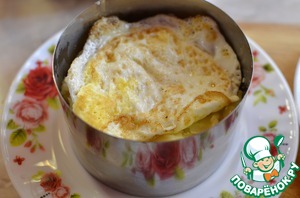 Поджарить 1 яйцо с двух сторон, можно взять 2 яйца будет еще вкуснее. при жарке яйцо слегка посолить.