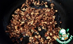 На подсолнечном масле пассеруем лук с грибами до готовности.