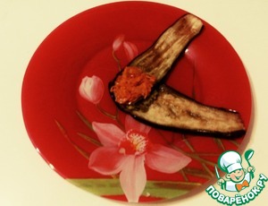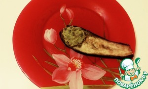 Затем накрываем вторым баклажаном и кладем ч. л. морковной начинки.