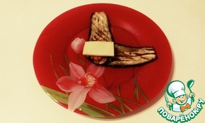 Пока готовятся начинки мы обжарим баклажаны. Я это делала на гриле. Для этого каждый ломтик промазала оливковым маслом. Вы можете обжарить просто на сковороде, но на гриле вкуснее.