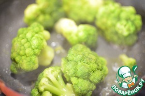 Брокколи обжарить в небольшом кол-ве оливкового масла.