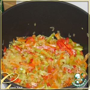 Лук и морковку (половину) режем на спец-терке (или режем ножиком мелко), кидаем в разогретое масло в казан