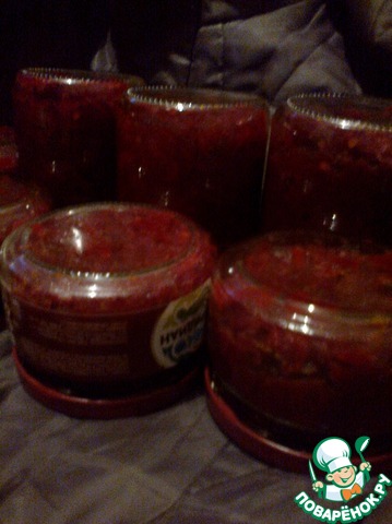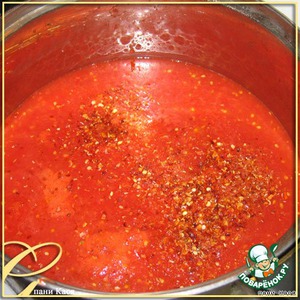 Добавляем сухой красный перец (или свежий - проворачиваем вместе с помидорами)