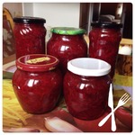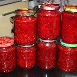 Доводим до вкуса солью и сахаром, варим 1-2 минуты и раскладываем по небольшим баночкам (само собой баночки моем, стерилизуем над паром, крышечки кипятим)