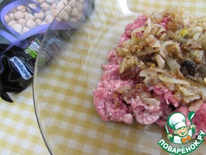 Подготовить непостную добавку. В фарш добавить луковую начинку, соль и хорошо перемешать.