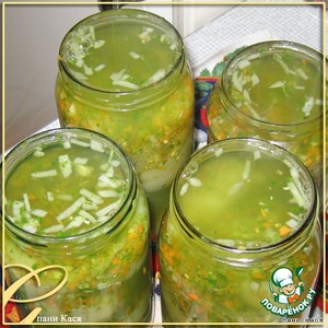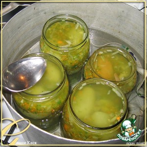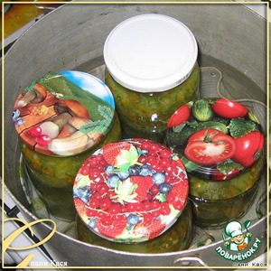 прикрываем крышками и стерилизуем 10 минут (банки по 0,8 литра)
