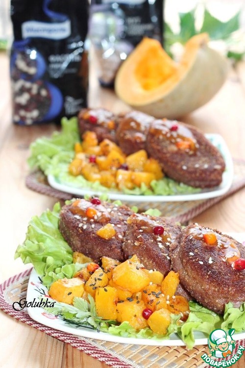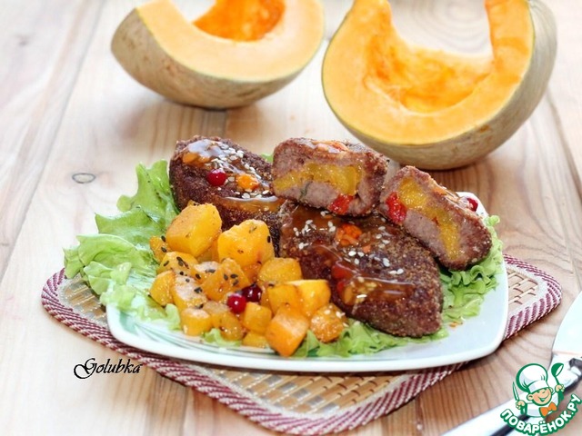 • 16 Не постные зразы готовы! Подаем зразы с салатом и соусом. На гарнир можно приготовить тыкву со специями.