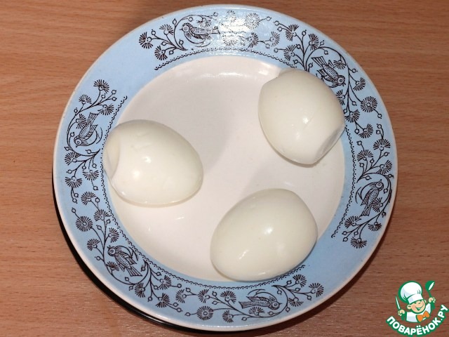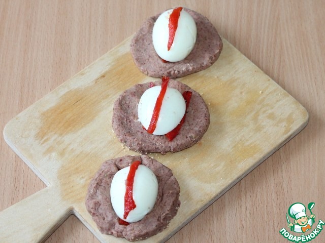 • 15. В оставшиеся 3 лепешки кладем половину вареного яйца, немного перчика чили и формируем зразы. Обваливаем зразы в сухарях и жарим с двух сторон.