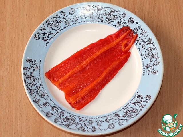 • 4. снять кожицу, очистить от семени и порезать соломкой.