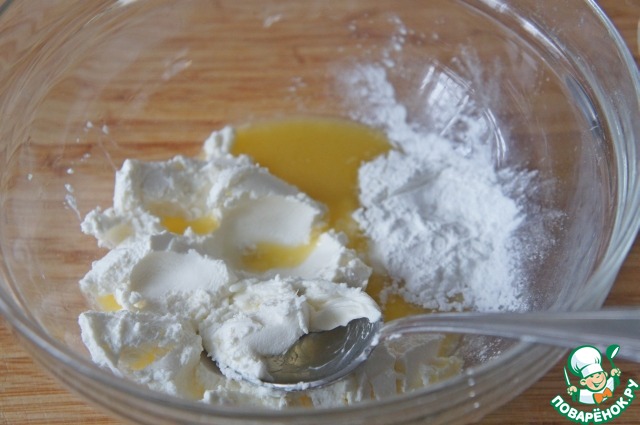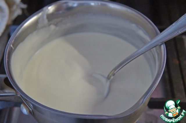 Растопить 2 ст. л. масла. Смешать крем-фреш с кукурузным крахмалом и добавить к маслу. У меня был Хохланд сливочный творожный крем.