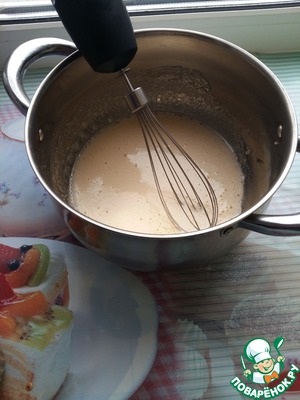 Крем: сметану взбить с цикорием и сахаром. -