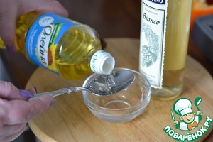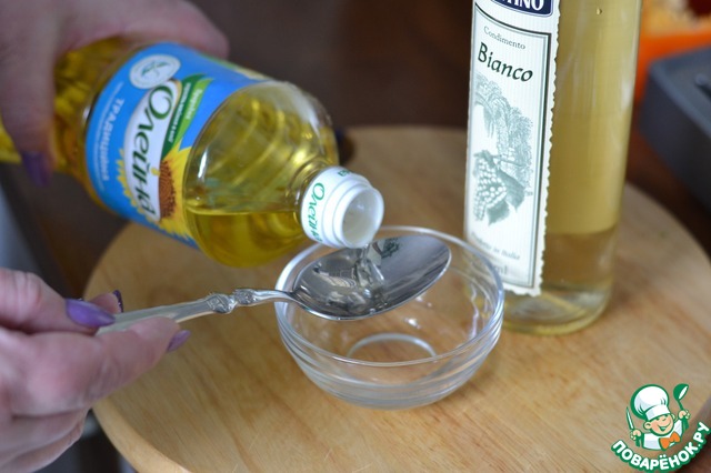 В отдельной мисочке смешать подсолнечное масло "Олейна" и винный уксус,