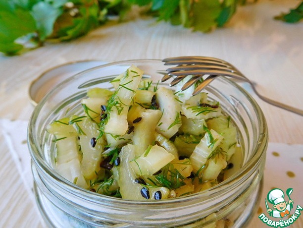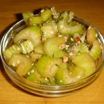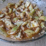 4) Заливаем сельдерей со специями, перемешиваем. Перекладываем в контейнер с крышкой.