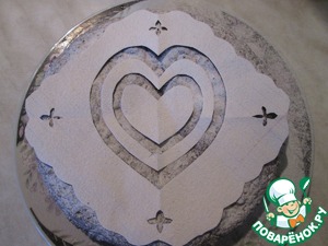 Для украшения вырезать трафарет из бумаги, положить его на верх коврижки и посыпать сахарной пудрой.