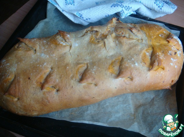 • На поднявшейся булке делаем несколько произвольных надрезов острым лезвием или, как я, ножницами. Выпекаем хлеб в разогретой до 190*С духовке 45-50 минут.