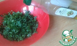 Мелко нарезанную зелень перемешать со ст. л. оливкового масла