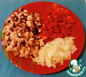 Когда из грибов выпариться половина жидкости, добавить сладкий перец и соевый соус.