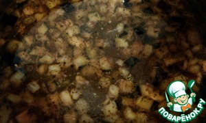 На подсолнечном масле "Олейна" начинаем обжаривать грибы с луком.