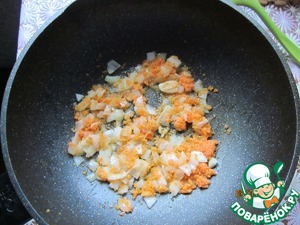 Лук порезать, морковь натереть и обжарить на растительном масле.