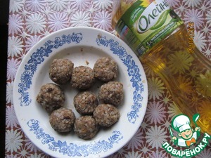 Кашу хорошо размять рукой, добавить грибное пюре. Хорошо вымесить фарш, посолить, поперчить и сделать фрикадельки размером с грецкий орех. Обжарить фрикадельки на растительном масле.