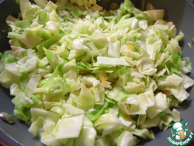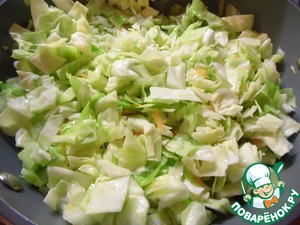 Молодую капусту нашинковать, добавить к луку и моркови, тушить 5-7 минут, посолить, поперчить, приправить тимьяном.